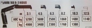Example: Look at the load chart below from a knuckle boom crane.